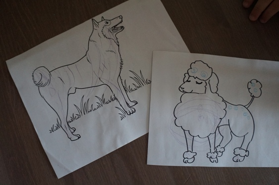Для Хаски нарисовали шерстку-штрихи, а пуделю - спиральки: