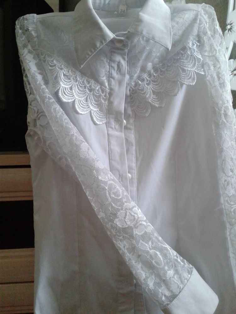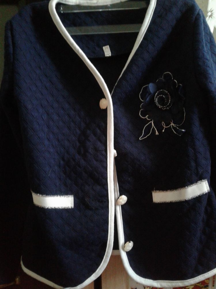 Продам комплект одежды на девочку рост 122-130. Блузка белая с ажурные и рукавами - размер 34, юбка-мини темно-синяя размер 32, пиджак темно-синий размер 36. Идеальный вариант, если у вас в школе требования синей формы.
