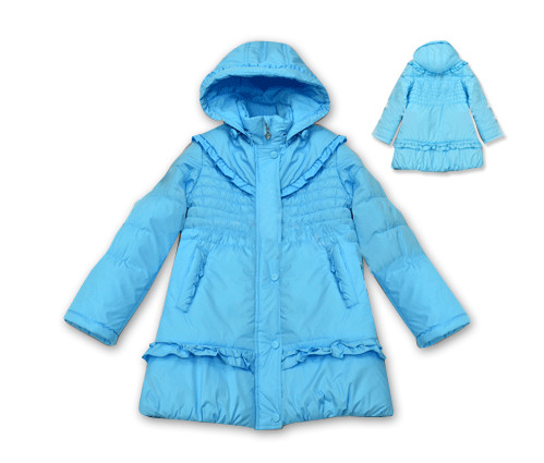 Пальто с отстегивающимся капюшоном. Рукава с отворотом для регулировки длины и трикотажным манжетом изнутри.