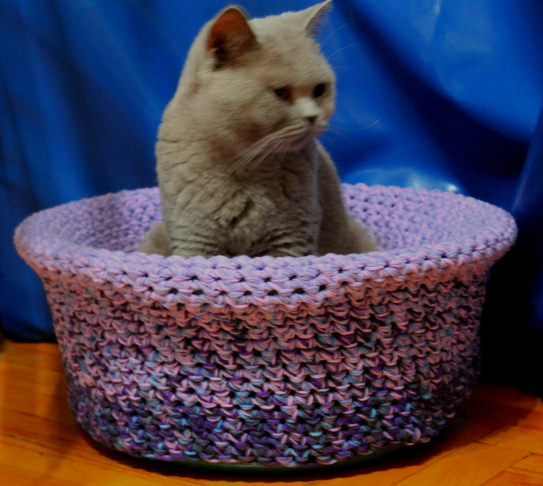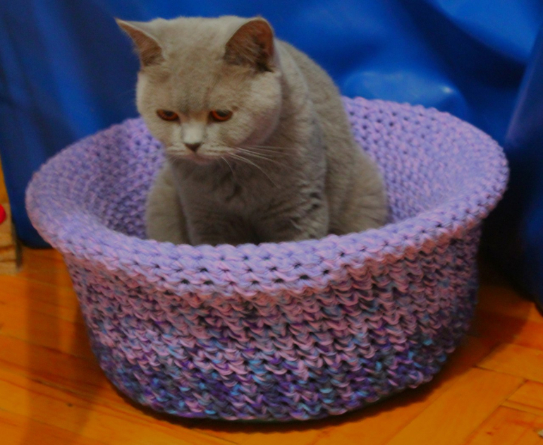 Связала из остаточков пряжи лежанку. Зимой должно быть тепло. Мягкая и нежная получилась. Лизе понравилась.