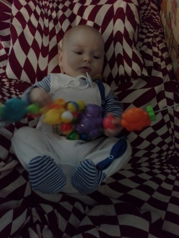 +500 г (5400), +2,5 см (60 ,5), голова 39,5 см, грудь 39 см. У невролога вопросов нет. Всё по возрасту: игрушками очень интересуемся, всё, что попало в руки, тут же попадает в рот (в том числе и уши нашей собаки).