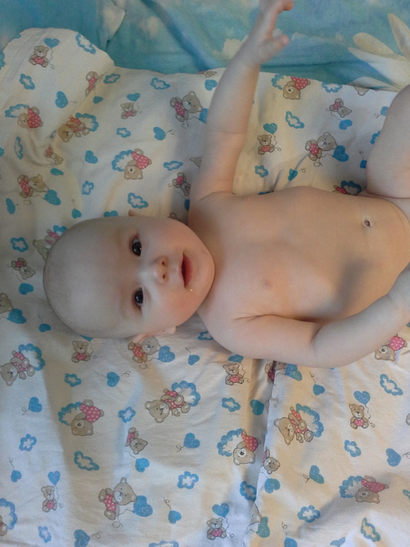 Мы крошечки-хорошечки! Весим 6040, но нам хватает и врач наша-мудрая, в этом отношении, тетка. Рост 64 намеряли, хотя позавчера купила бодик на 74, так как на 68 тянут в памперсе. Голова-42. Все умелки и хотелки-по возрасту. Едим брокколи, цветную капусту, кабачок, гречку. Попробовали персик.
