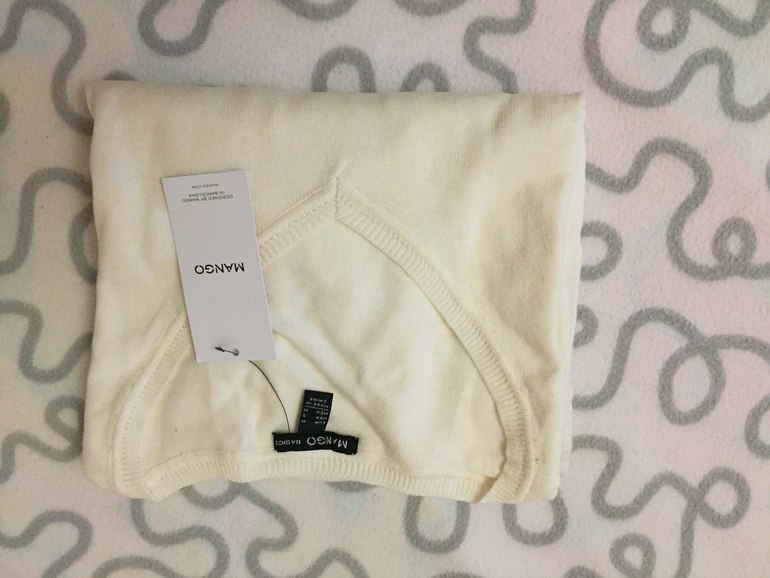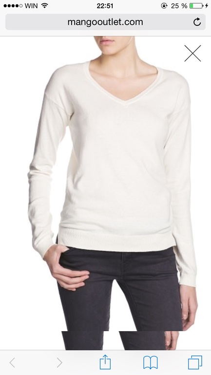 Повседневный джемпер с большим содержанием хлопка. V-образный вырез горловины, длинные спущенные рукава. Края связаны резинкой, по бокам внизу разрезы. Цвет указан белый, но по факту молочного цвета