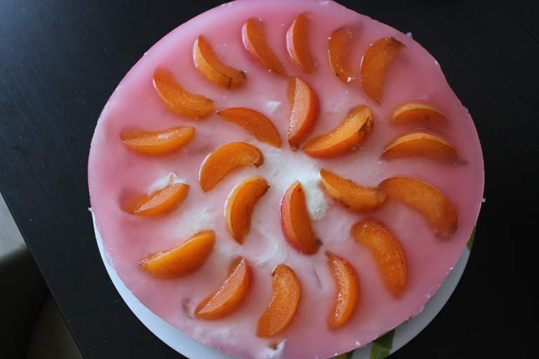 - выливаем желе сверху и отправляем до полного застывания в холодильник (я отправляла на ночь).