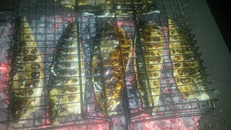 Да у нас сегодня погода не радовала. Ветер очень холодный был. И хотелось как можно побыстрее пожарить и зайти домой. А так я еще очень хотела картошку в углях ((((.да ладно и так все вкусно было.осталось 1.5 рыбки лежу и мечтаю когда наступит утро чтоб поесть ее))))