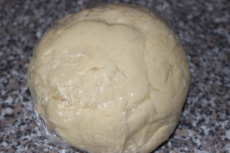 Добавляем муку и замешиваем тесто, как только перестало сильно липнуть к рукам, убираем его в морозилку на 15 минут