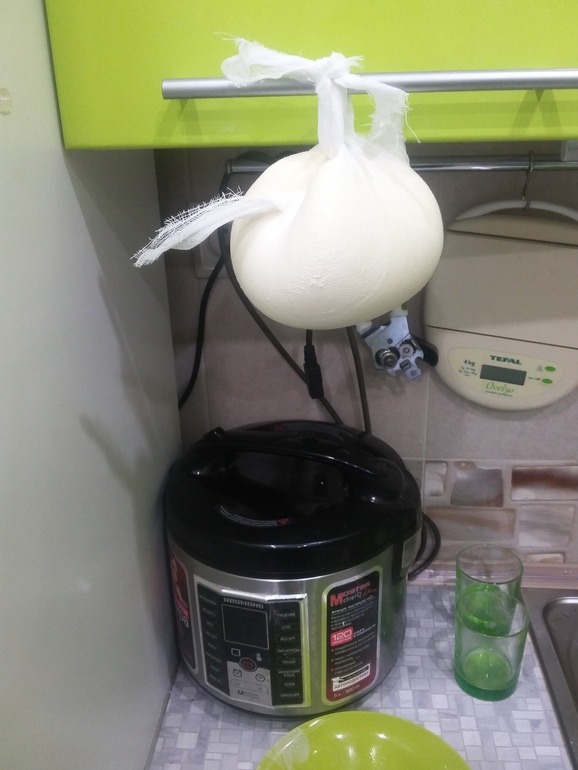 И подвесить примерно на час (пока не перестанет капать жидкость):