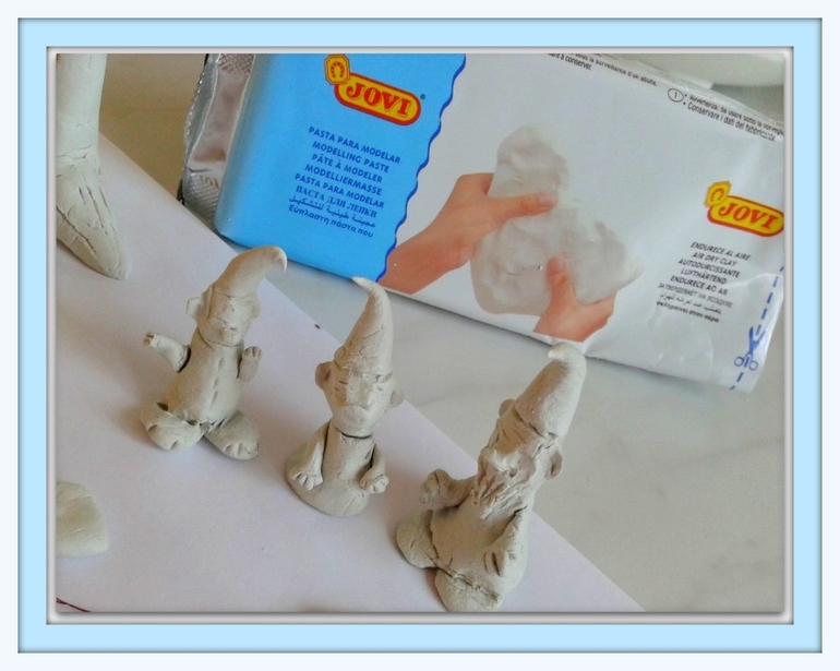 Гномиков мы сделали из самозатвердевающей глины и разукрасили их акриловыми красками