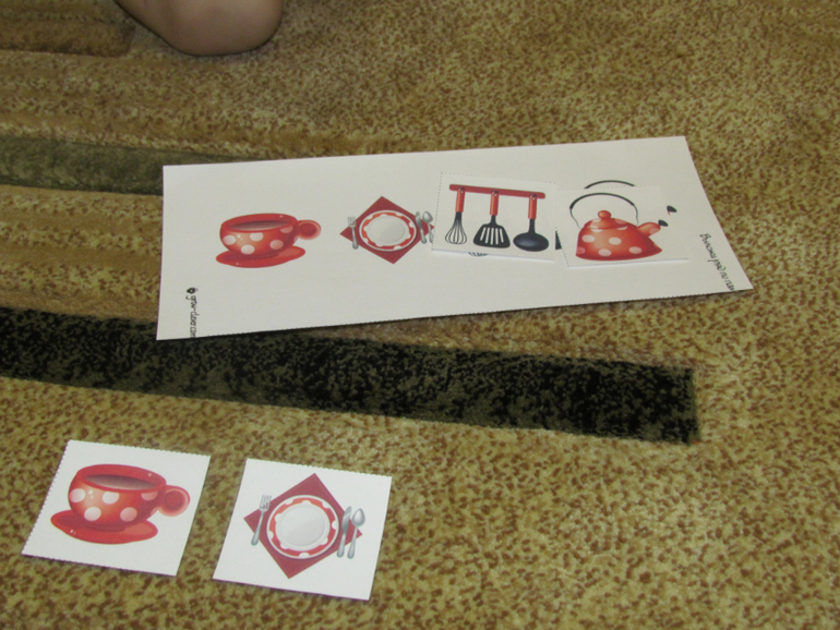 При прочтении сказки вместе с Димой внимательно слушали и считали, какая посуда убежала от Федоры. Затем подключили очень интересный тематический комплект "Посуда" от Grow Clever, спасибо Саше за возможность пользоваться материалом.