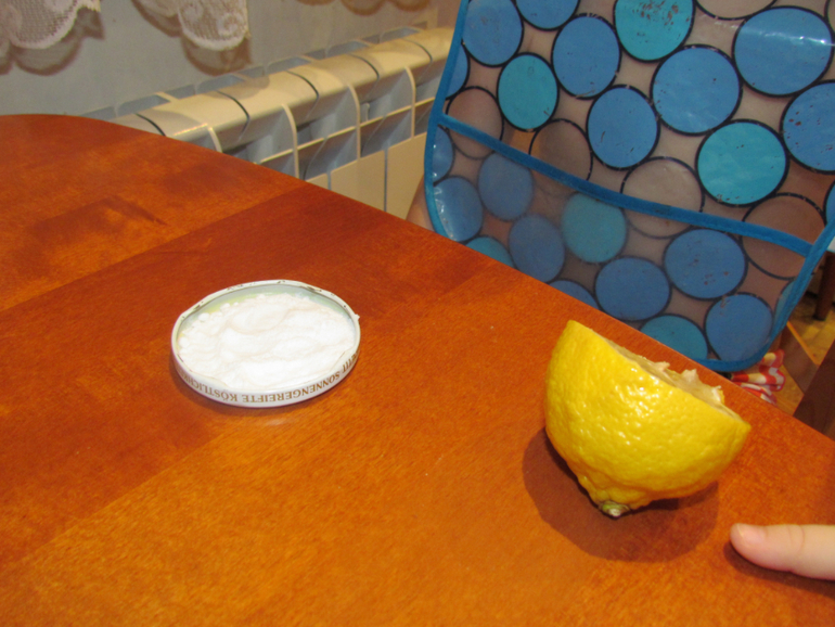 3. Последний "фокус-покус" - "Шипучка": сода + сок лимона. Лимон тоже с радостью был откушан))