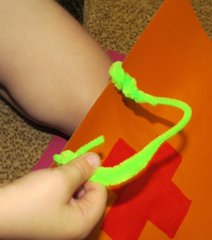 Потом "чинили" чемоданчик - шнуровка + синельная проволока для ручек.