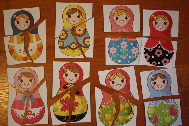 Вера собирала большую и маленькую матрешки (разбирать-то всегда готова) и показывала, где какая