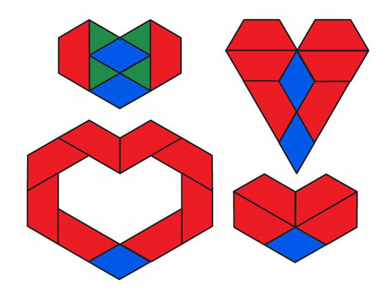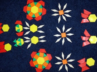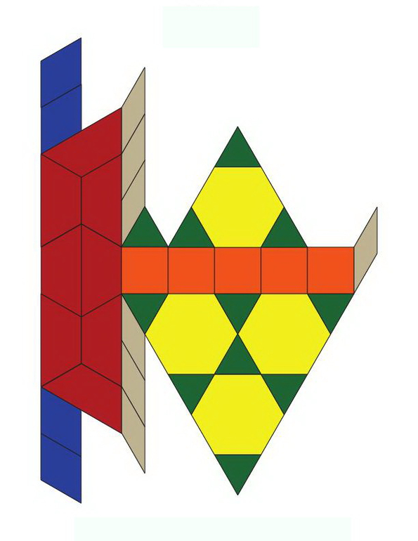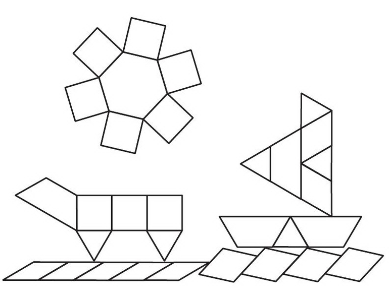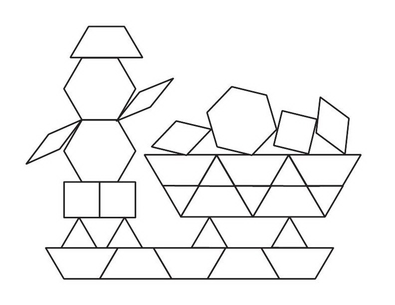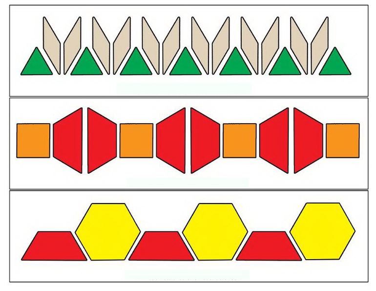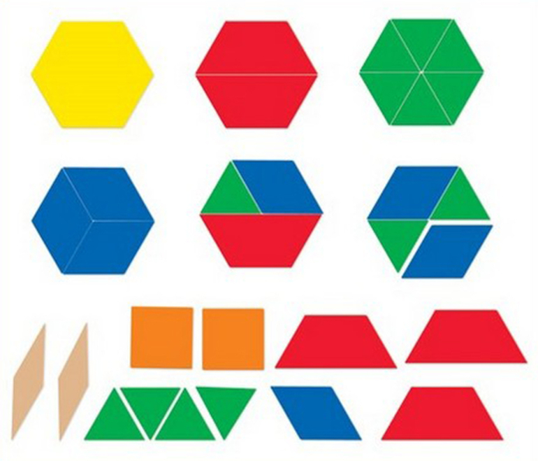 Набор всегда включает в себя следующие формы: треугольник, квадрат, ромб, тонкий ромб, трапеция, и шестиугольник. Квадраты всегда оранжевый, треугольники всегда зеленый, шестиугольники всегда желтый и т.д. Наборы самые разнообразные, их можно купить на сайте http://www.ebay.com/bhp/pattern-blocks или http://www.amazon.com/gp/product/B000F8T8U0/ref=as_li_tl?ie=UTF8&camp=1789&creative=390957&creativeASIN=B000F8T8U0&linkCode=as2&tag=thireamam-20&linkId=WIOHRIN5AJHWBVGD. Так же там можно приобрести коврики ( http://www.amazon.com/gp/product/B0015KET88?ie=UTF8&tag=confofahome-20&linkCode=as2&camp=1789&creative=9325&creativeASIN=B0015KET88 ). Существуют в продаже так же гигантские магнитные блоки Pattern ( http://translate.googleusercontent.com/translate_c?depth=1&hl=ru&prev=search&rurl=translate.google.ru&sl=en&u=http://www.learningresources.com/product/giant%2Bmagnetic%2Bpattern%2Bblocks.do%3Fsortby%3DourPicks%26sortby%3D%26%26from%3DSearch&usg=ALkJrhhS3hjziJjnJb1BxqNhuqRiEroz6Q ). Для тех, у кого нет возможности приобрести блоки и коврики, их можно изготовить самим. Для этого распечатать блоки на принтере, укрепить скотчем, либо заламинировать. Убедитесь в том, чтобы напечатать "100%" или "фактическому размеру", а не "Масштабировать страницу", если вы хотите, чтобы рисунок блоки, чтобы поместиться на верхней части конструкции, и установите ориентацию бумаги надлежащим образом. Для того чтобы ваши коврики были более прочными, вы можете печатать на картоне.