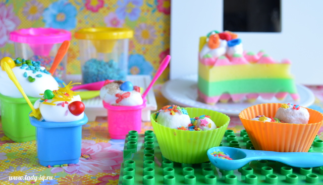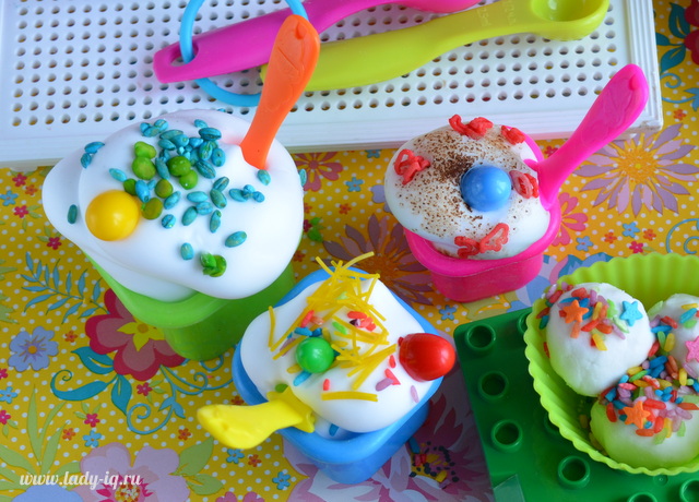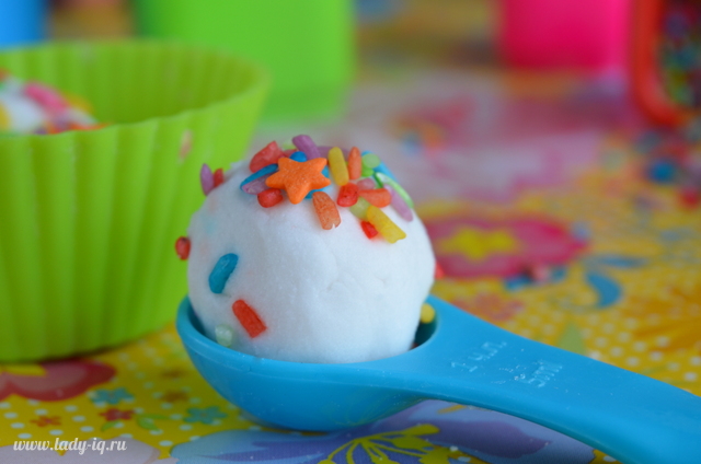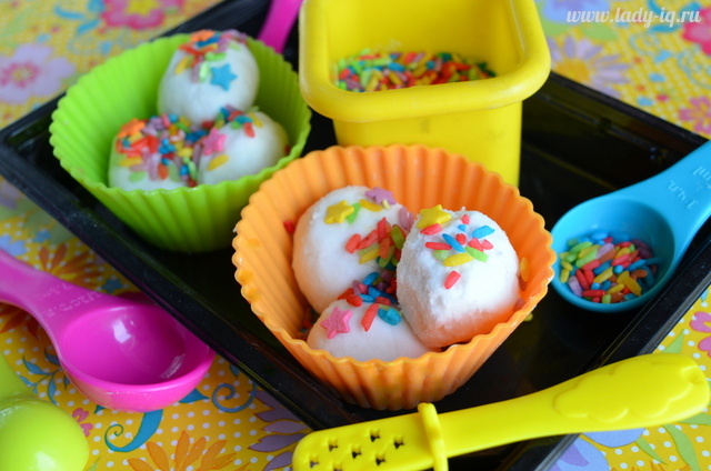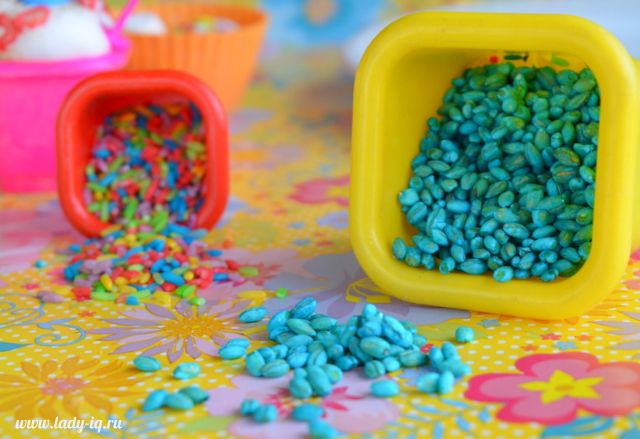 Сверху, наш пломбир посыпан крашенным рисом, который мы использовали, как кондитерскую посыпку.