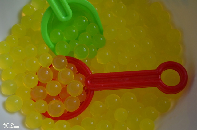 Гидрогель - это полимер, который поглощает и удерживает воду. Его широко используют в садоводстве, медицине, гигиенических средствах. А теперь еще и для детских игр. В глобальной сети, можно найти множество вариантов подобных игр, мы с Андрюшей, выбрали наиболее подходящие для нас. Подготовка гидрогеля и опыты. Сам процесс подготовки и "выращивания" шариков - это уже мини-опыт: 1. Берем пакетик шариков и наливаем немного воды. 2. Примерно, через 2 часа шарики начнут увеличиваться в размерах и "расти". В сухом состоянии шарик диаметром около 1,5 мм, а увеличиться может до 8 мм.