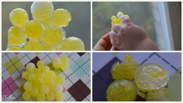 Конечно же, перед этим опытом, я предварительно несколько шариков заморозила. И вот когда я достала их из морозилки, посыпалась куча вопросов: - А это ягоды? - А это мороженое? - А это кушать? Нет-нет и еще раз нет!(противопоказаны подобные игры и опыты с гидрогелем, для деток, которые любя все пробовать "на зубок"). Мы из этого возраста выросли, поэтому я просто ответила НЕТ! 1. Замороженные шарики. Итак, мы с Андрюшей вначале посмотрели, что из себя представляют замороженные шарики.Потрогали и узнали, что они холодные! 2. Прозрачность. Потом, смотрели какие они будут на свету (прозрачные или нет). 3. Таяние шариков.А затем, что будет происходить с шариками, когда они начнут таять (шарики стали не только холодные, но и мокрые)!