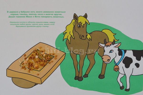 Всем привет! Наконец-то я подготовила альбом для творческих занятий с малышом. В нем главные герои Маша и Витя - отправляются в деревню к бабушке, чтобы отдохнуть и, естественно, помочь ей по хозяйству. Малышу предстоит отправиться в эту веселую поездку вместе с ребятами, с головой погрузившись в деревенский быт. Ну а дел в деревне, как известно, не мало: нужно и животных покормить, и урожай собрать, и кур от лисы спрятать, и заплатки к одежде приделать, да и много чего еще. Чтобы справиться с этими заданиями малышу придется хорошенько потрудиться: его ждут аппликации (в том числе из ваты, крупы, салфеток), лепка, рисование, задания на развитие мелкой моторики. Главные герои обязательно полюбятся малышу, и он с удовольствием включится в игру!