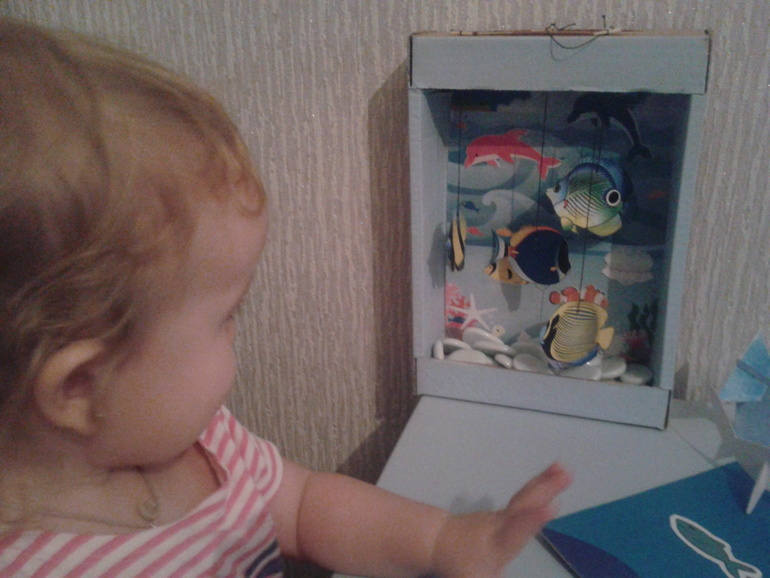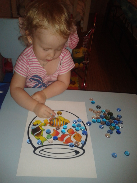 Также сегодня мы играли в лото, рисовали киту фонтан пластилином, украшали аквариум, делали аплликацию. Ну и, конечно, играли в рыбалку (сейчас это наш хит), читали "Кот-рыболов" Сутеева