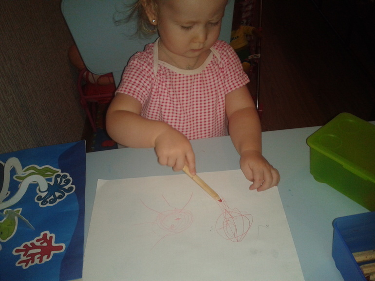 Затем я попросила Лисену нарисовать осьминогов. Круги вырисовывала сама!!! Я ножки одному подрисовала))