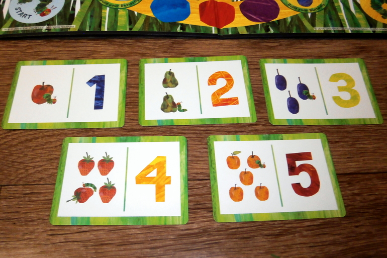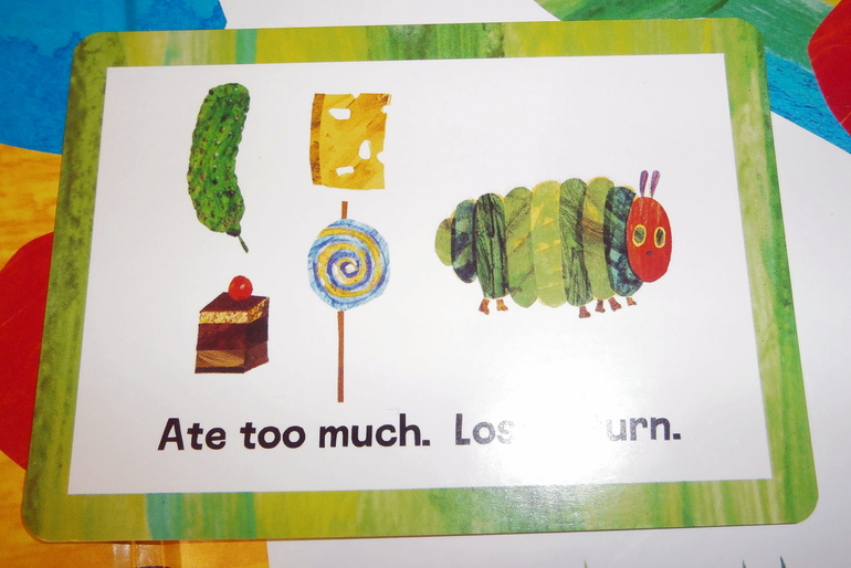 Самый младший игрок берет карточку и делает своей гусеницей ход в любом направлении на количество шагов, указанное на карточке (бабочка на поле, тоже считается за кружок хода).