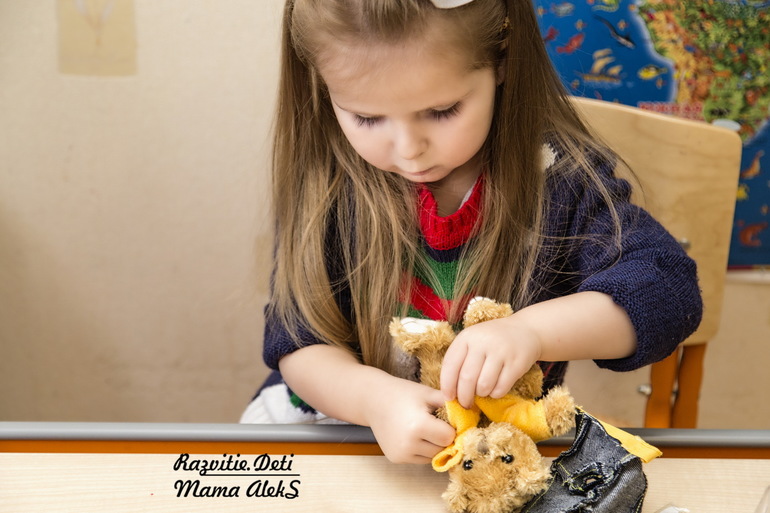 набить ватой и одеть одежду. Придумать ему имя. Задания для Вики, ей 3,5