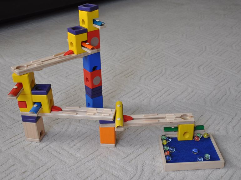 Этот конструктор хорош всем: его приятно держать в руках, цвета деталей радуют взор своей яркостью, он вызывает интерес при собирании и восторг при запускании по нему шариков... в общем, море удовольствия!