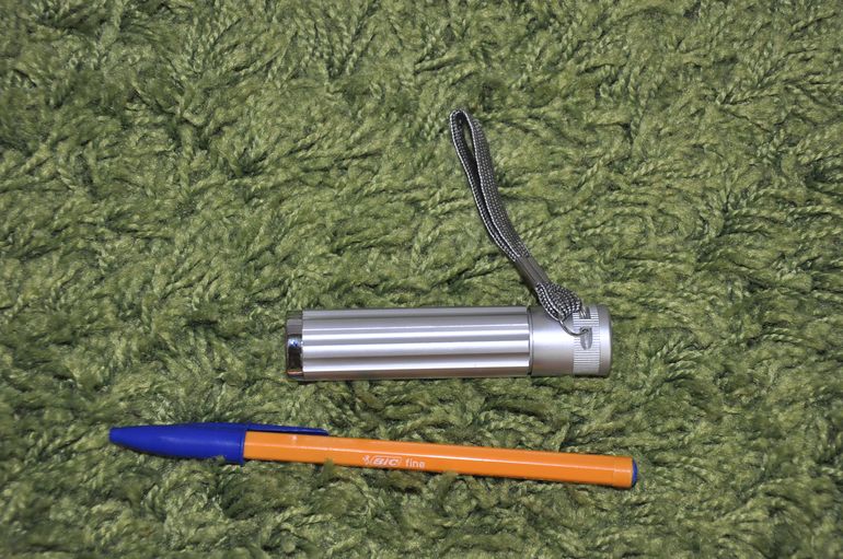 )))В наборе 6 шариков (один мы уже "посеяли") и фонарик на батарейке вот такого размера: