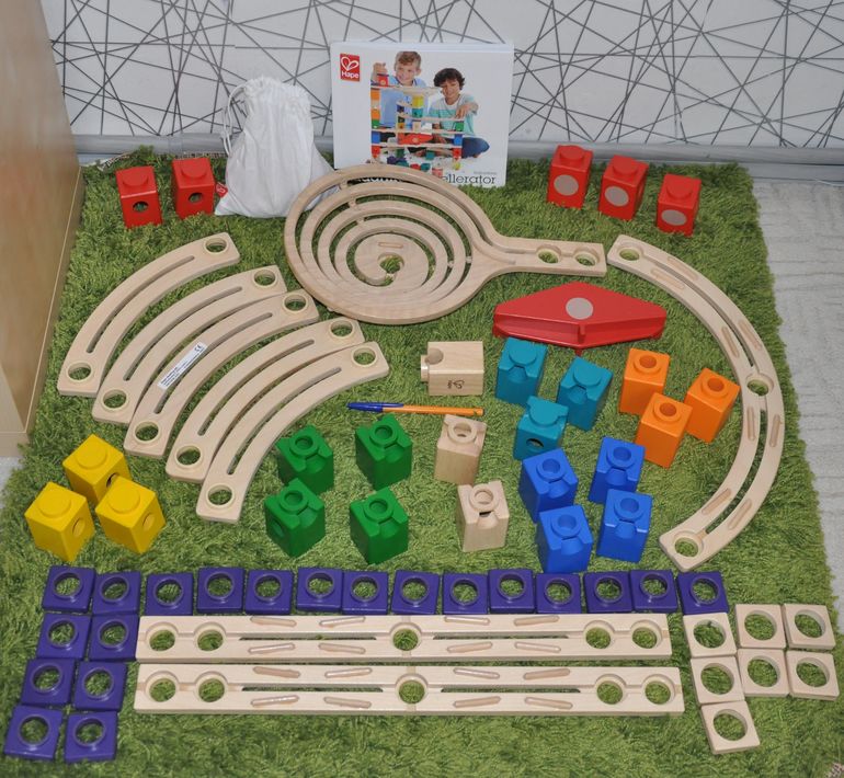 Несмотря на то, что похожий конструктор со скоростным спуском шариков у нас уже был (о нем рассказывала вот тут), удержаться от покупки этих мегакрутых наборов от Hape я все-таки не смогла, ведь эстетическое удовольствие еще никто не отменял!