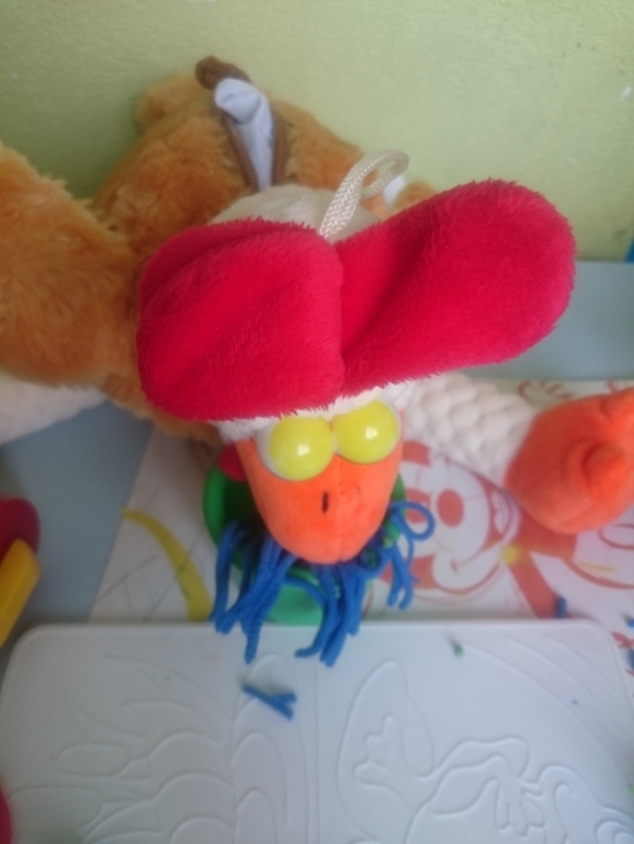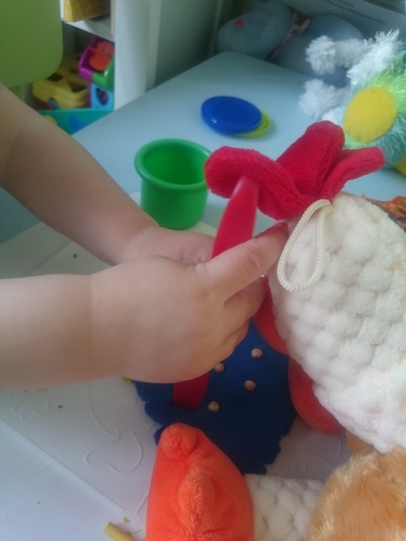 Вот наша курочка кушает. Кстати хочу сказать, что после полутора дети особенно нуждаются в персонаже, который будет все пробовать, что они из пластилина приготовили, у нас это курочка. Она ест все))) и вам советую найти дома такого дегустатора вашей кулинарии) малыши от этого в восторге, когда видят смысл и необходимость своих трудов: