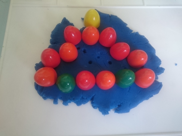 Делаем отпечатки из элементов пирамидки и можем и из пластилина куличик сделать.