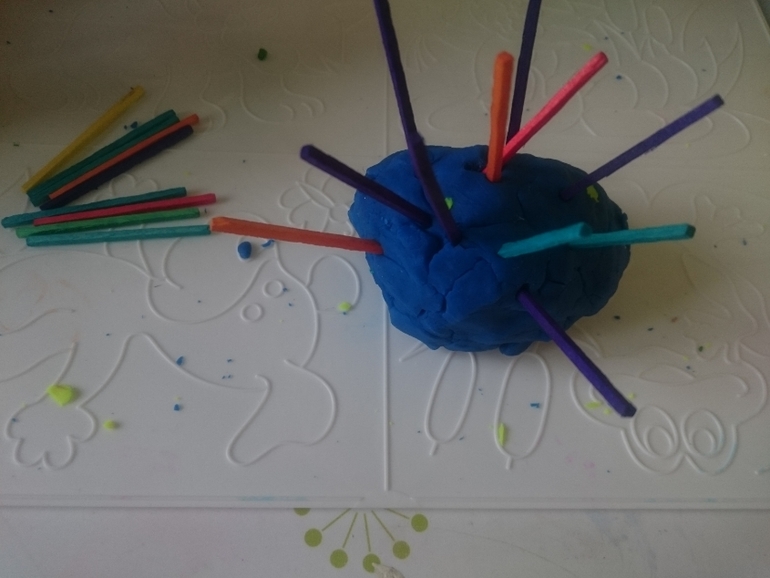 Шпажки отличный элемент игры с пластилином. Можно отщипанный кусочек пластилина накалывать на нее и кормить животных: