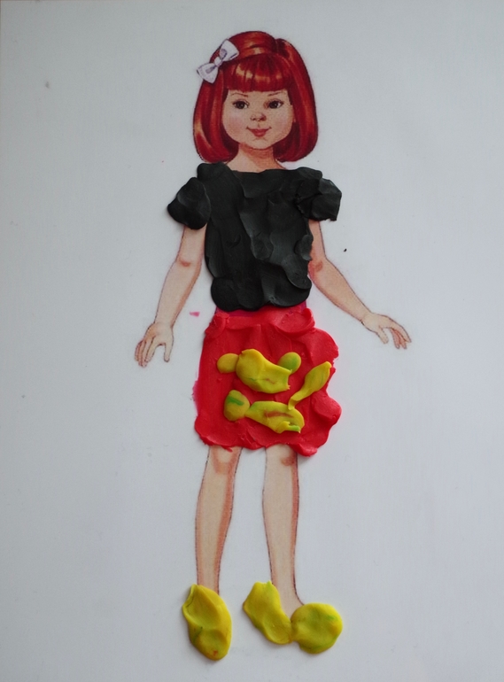 С вырезанием я повременила, решила, что с нарядами мы пока пофантазируем сами. Вообщем, лист А4 с девочкой я заламинировала и теперь у нас просто неубиваемое поле для фантазии с нарядами. Если нет возможности заламинировать картинку, то можно это сделать самостоятельно скочтем, но тогда она не будет такой долговечной.