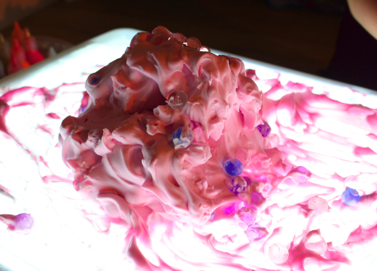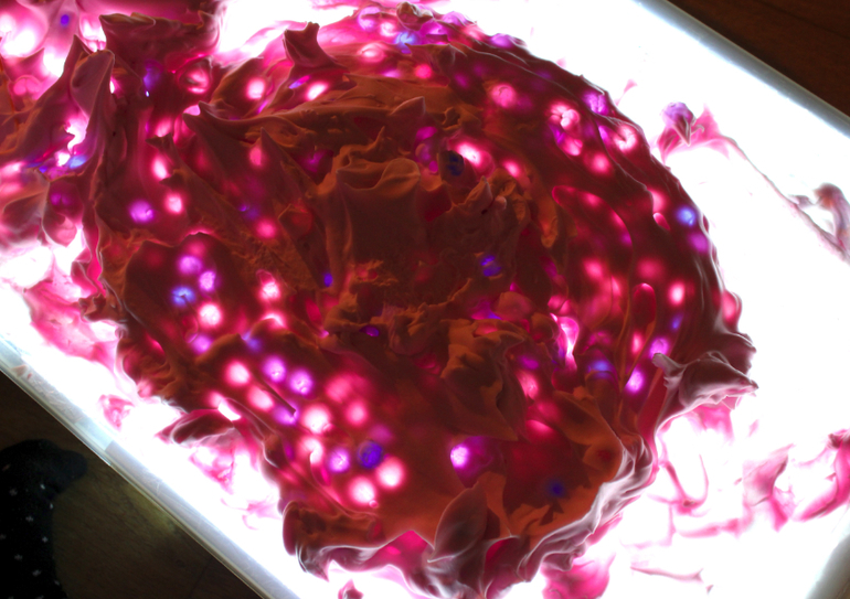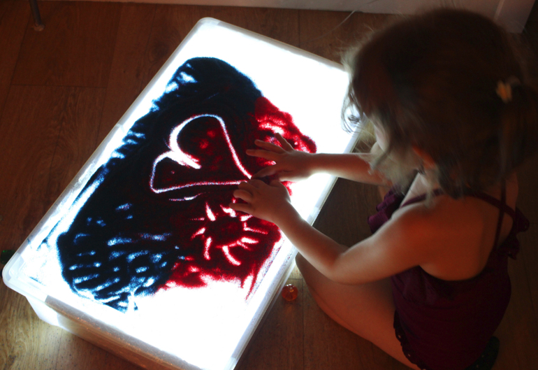 Для рисования на столе с подсветкой вместо песка можно использовать соль или манку. Манка и яркая подсветка создадут неповторимую игру света и тени, и появятся удивительно красивые образы.