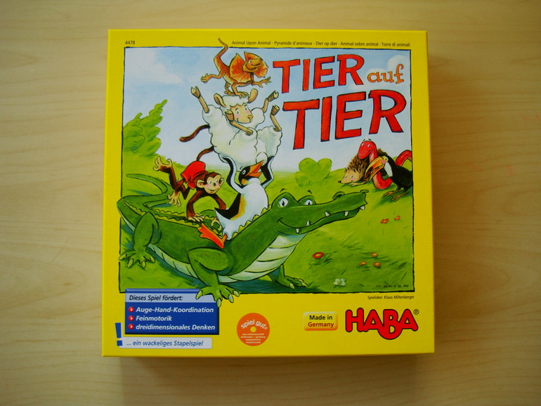 Tier auf Tier - одна из визитных карточек компании Haba. Появилась она еще в 2005 году, завоевала сравнительно небольшую кучку наград, зато долгое время удерживает весьма почетную позицию в рейтинге детских игр bgg. На текущий момент занимает 9 строку - как раз между Коварным лисом и Сырным замком.
