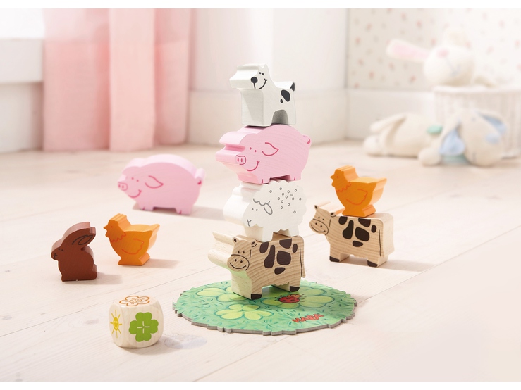 Игра для самых маленьких игроков, заявленный возраст - от двух лет. Здесь предусмотрены три варианта игры. Первый. Игроки по очереди ставят фигурки на лужайку, образуя пирамиду и получая по солнышку за каждое удачное размещение животного. У кого солнышек больше - тот и победил. Второй. В игре появляется кубик и игроки складывают не одну пирамиду, а две. Кубик определяет, какую пирамиду игрок должен дополнить фигуркой. Третий - кооперативный. Игроки должны поместить всех животных на пирамиды до того, как кролик переберется от одной лужайки до другой.