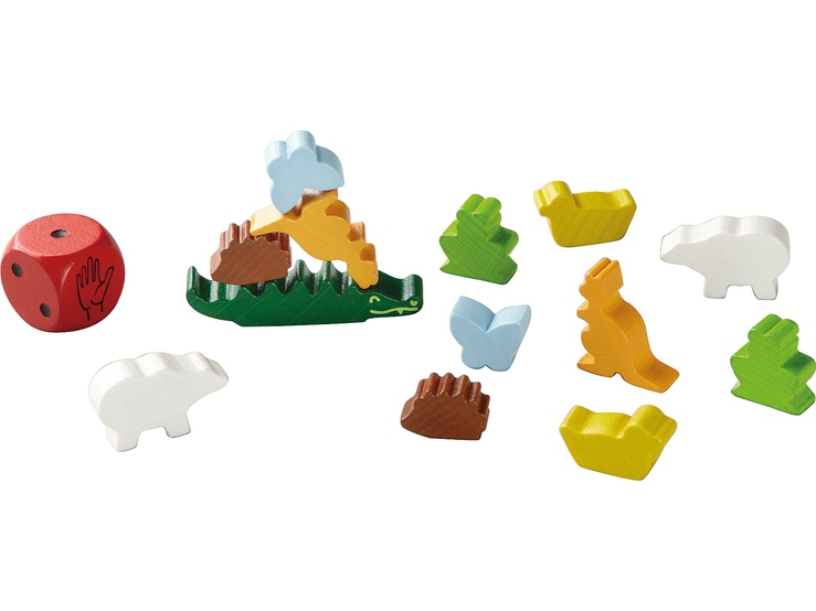 У нас дома есть первый балансир из линейки Tier auf Tier. Правила очень простые. Игроки (от 2 до 4 человек) получают по одинаковому набору зверушек. В центре устанавливается фигурка крокодила - он становится основой будущей пирамиды.