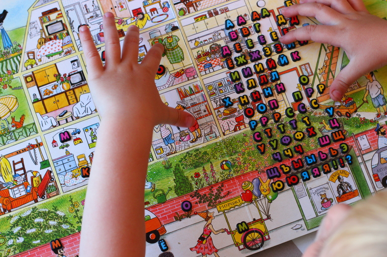 Еще был и пользовался спросом (и даже сейчас, уже в старшем возрасте)- пазл с буквами, рамка с вкладышами