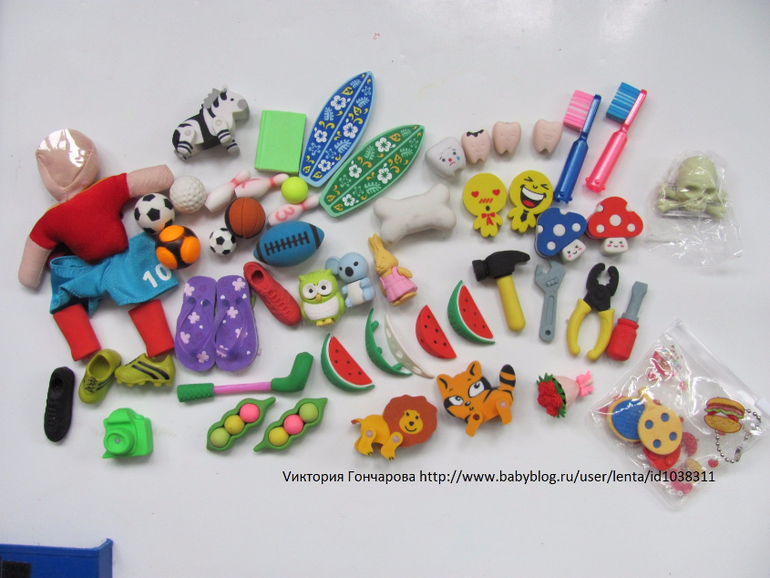 Еще есть интерес к ластикам. Есть и обычные, и в виде фигурные.