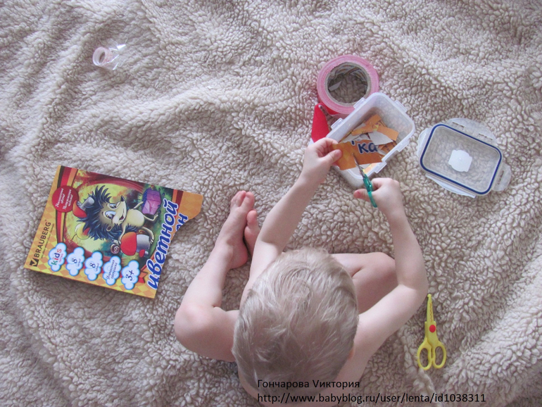 Вообще игр со скотчем у нас много, он любит с ним возиться, как-нибудь соберу все в одну статью.