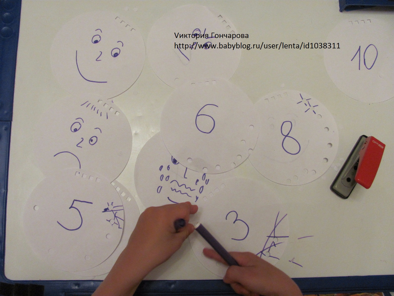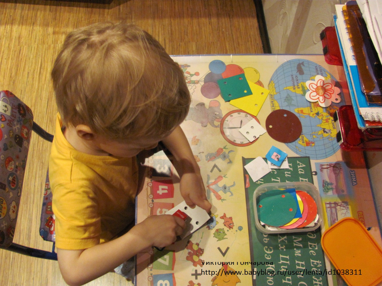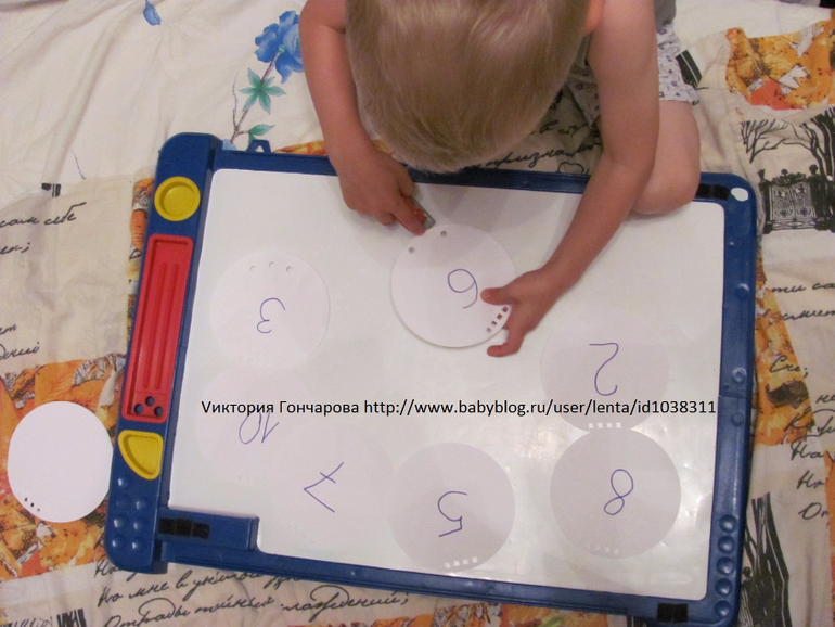 Или другой вариант - рисуем круг, просим ребенка закрыть глаза, стираем, рисуем другую фигуру, закрываем ее ладонью, ребенок открывает глаза, и говорит волшебные слова - у нас это "КриблиКраблиБумс", убираем ладонь, и удивляемся волшебству))). Конечно потом секрет фокуса раскрываем. И дальше уже ребенок сам "колдует".