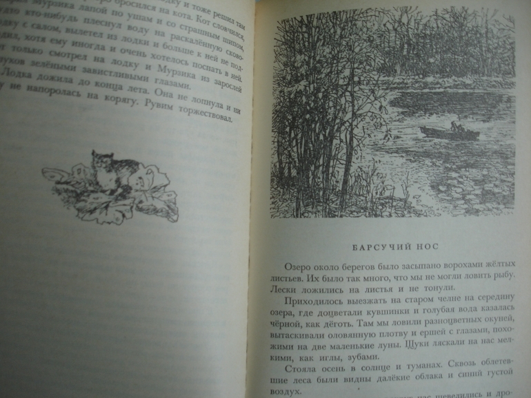Продолжим о забавных рассказах....После того, как мы с сыном осилили "Кот-ворюга" и "Степан и Фунтик", я вдохновилась и стала искать то, чем в детстве пренебрегала. У родителей дома нашёлся сборник К.Паустовского из серии "Школьная библиотека". Я села читать, но Санька решил, что это тоже ему. Из этой книги мы читаем "Барсучий нос". События происходят с теми же героями и при тех же обстоятельствах - на рыбалке. Герои становятся свидетелями того, как барсук обжигает нос, засунув его в сковородку с жарящейся картошкой, а потом лечит его в расщелине трухлявого пня.