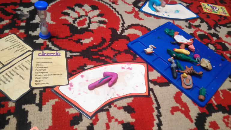 Раздаем карты, договариваемся какое слово по счету лепим, лепим за 30 секунд по песочным часам и угадываем.