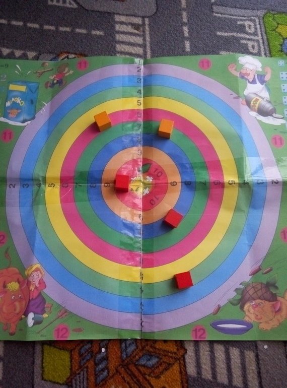 Цель игры: первым пройти обязательно каждое поле от 1 до 12. Для этого фишка становится сначала на 1, потом на 2 и т.д. до 12. Мы играли до 13, т.е. должны были выйти за пределы поля.