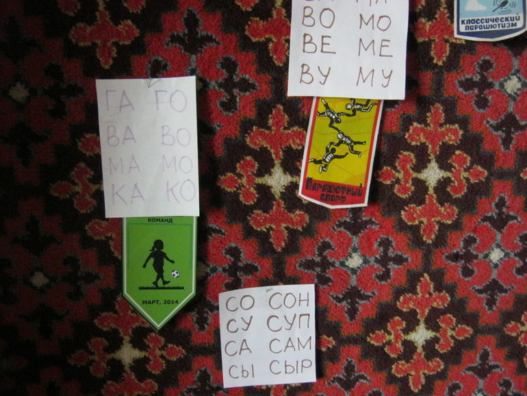 У Максима над постелью на всякий случай тоже висел листок со слогами