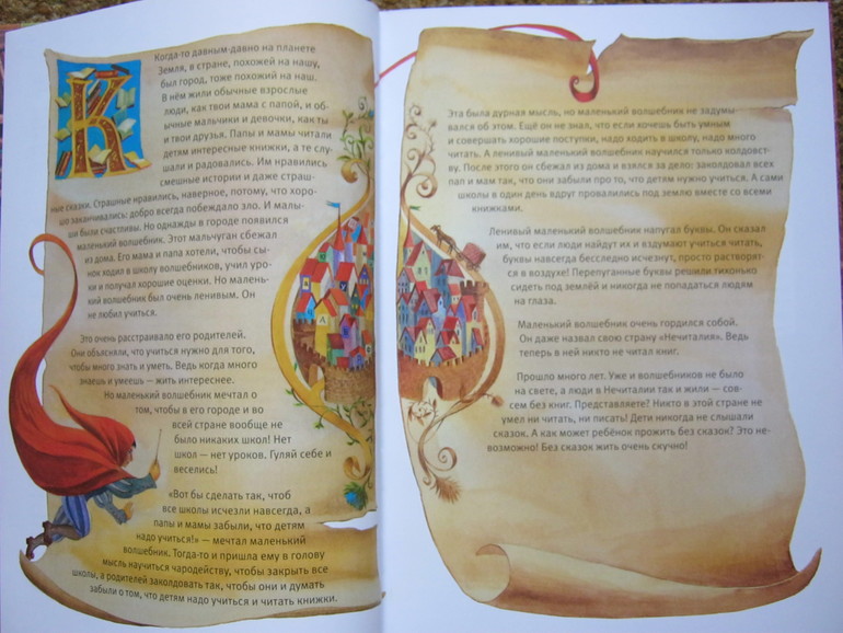 Сюжет там такой, что живший когда-то давно маленький волшебник не хотел учиться и заколдовал всех родителей, чтобы они отстали от детей, школы провалились под землю, а запуганные волшебником буквы разбежались и попрятались. Страна стала называться Нечиталией и никто там не учился в школах - рай земной, правда? ))