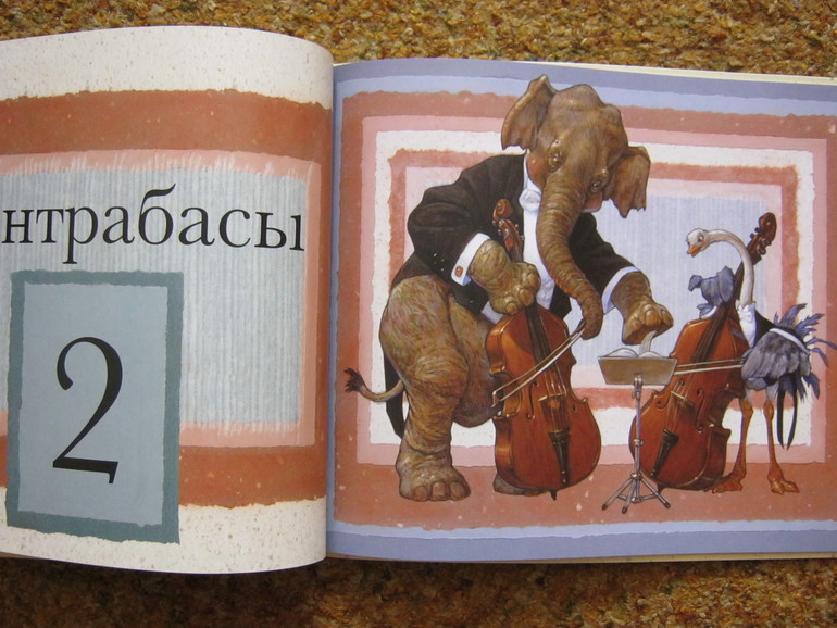 Предложенный для чтения Оркестр зверей, Максим быстренько пролистал, снисходительно, если не пренебрежительно, называя цифры, и отложил в сторону - дескать, тоже уже прочел, халявщик. Соня с Родионом читали по-честному, буксуя на труднопроизносимых скрипках и контрабасах, пока не прочитали до конца. Книга - совершенное баловство, вообще без текста, но картинки! Какие же в ней картинки! Классика! Альбом художественных портретов музыкальных инструментов и разных животных в концертных фраках от Скотта Густафсона.