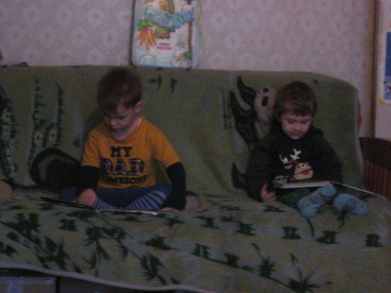 Нет, мы не бросились читать книжки-карточки-плакаты. Дети играли, бесились, ссорились, мирились. Изредка почитывая слог там, словечко сям, да написанное на бумажках, пришпиленное над кроватями.