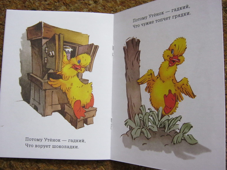 И если многие очень сомневаются брать ли ее детям старше 3-4 лет, то не стоит сомневаться. Эту книгу нельзя оценивать только с точки зрения художественности или примитивности текста. То, что ваш ребенок готов слушать
