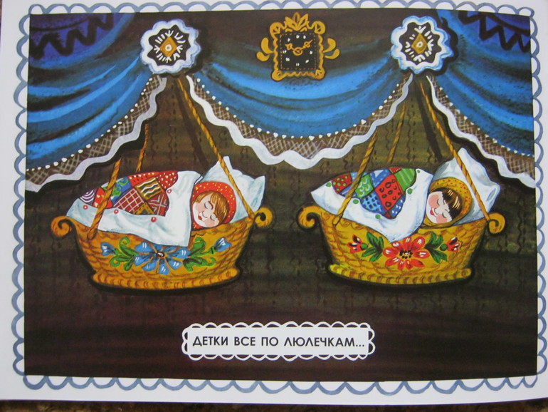 И вот энергичный и воинственный рубака, любые палки и детали конструктора моментально превращающий в автоматы-пулеметы-танки-пушки, у которого даже грибы и любые деревянные или пластмассовые бруски и чурбачки (что с последними неудивительно) превращаются в армию солдат, который держась за бороду Деда Мороза, загадал желание - превращаться когда надо в кого ему надо, как УмаЛак (у меня при этом чуть глаза из орбит не вылезли, я впервые слышала это имя, на что мама Родиона сказала даже не заморачиваться, потому что УмаРак - это какое-то страшилище из боевых роботов, продающихся в лего-отделах), так вот - этот самый Максим, читая книжку, размяк, разулыбался, очень умилился и растрогался над строчкой "детки все по люлечкам". Прочел ее несколько раз, потом несколько раз, смеясь, повторил "люлечки" и "спят-поспят", разглядывая картинки. Может быть, то, что всех детей уже забрали и он остался один, позволило ему выйти из образа брутального "крутого парня" и стать собой - маленьким мальчиком, который не прочь покачаться в люлечке и послушать колыбельную песенку...