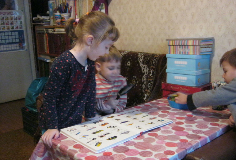 Восторг был полный! Плотный картон, яркие картинки, масса деталей, забавные близкие детям сюжеты, очень им интересные, вопросы, на которые они азартно бросались искать ответы - на некоторое время книга стала хитом!